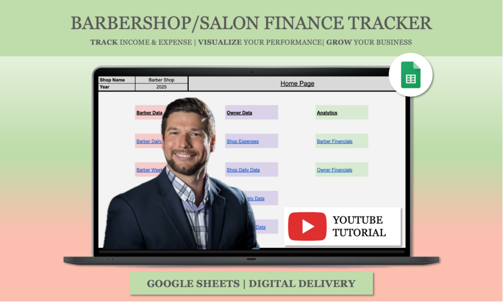 The Barbershop Financial Tracker Spreadsheet is a Google Sheet that was designed and built to help Barbershop Owners manage their business and reach their financial goals. The software was built to support using it over and over for many years to come.